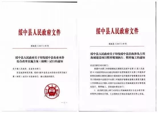把一份文件復制粘貼過來,首先記得改文號。文號是一份紅頭文件的臉面,兩份文件湊合一個文號,你想過文件的感受么?遼寧省綏中縣一個綏政發[2017]49文號,匹配有兩個完全不同的文件。其中一份就屬于臨時編造、應對環保檢查的假文件。而這個假文件背后,庇護著一個嚴重違規的圍填海項目建設。