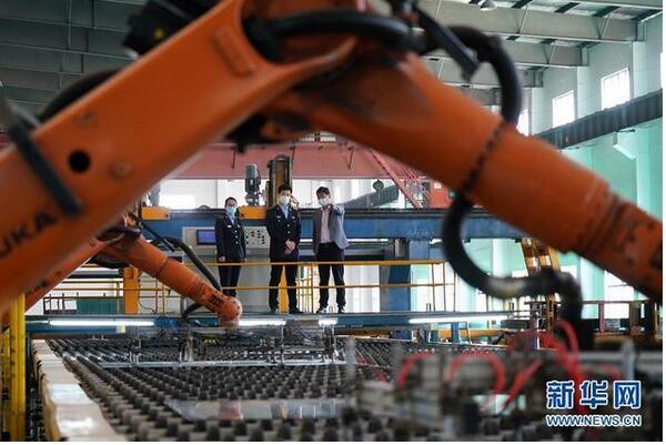 4月23日,河北省沙河市環(huán)境保護局執(zhí)法人員在河北鑫利玻璃有限公司內(nèi)向企業(yè)負責人了解企業(yè)生產(chǎn)情況。2019年起,有“中國玻璃城”美譽的河北沙河市啟動了“煙羽消白”工程,先后投入20億元對在產(chǎn)玻璃生產(chǎn)線實施超低排放改造,并結(jié)合提升廠區(qū)環(huán)境、優(yōu)化產(chǎn)能等措施,削減粉塵、二氧化硫、氮氧化物等污染物排放,推進大氣污染治理。 新華社記者 牟宇 攝