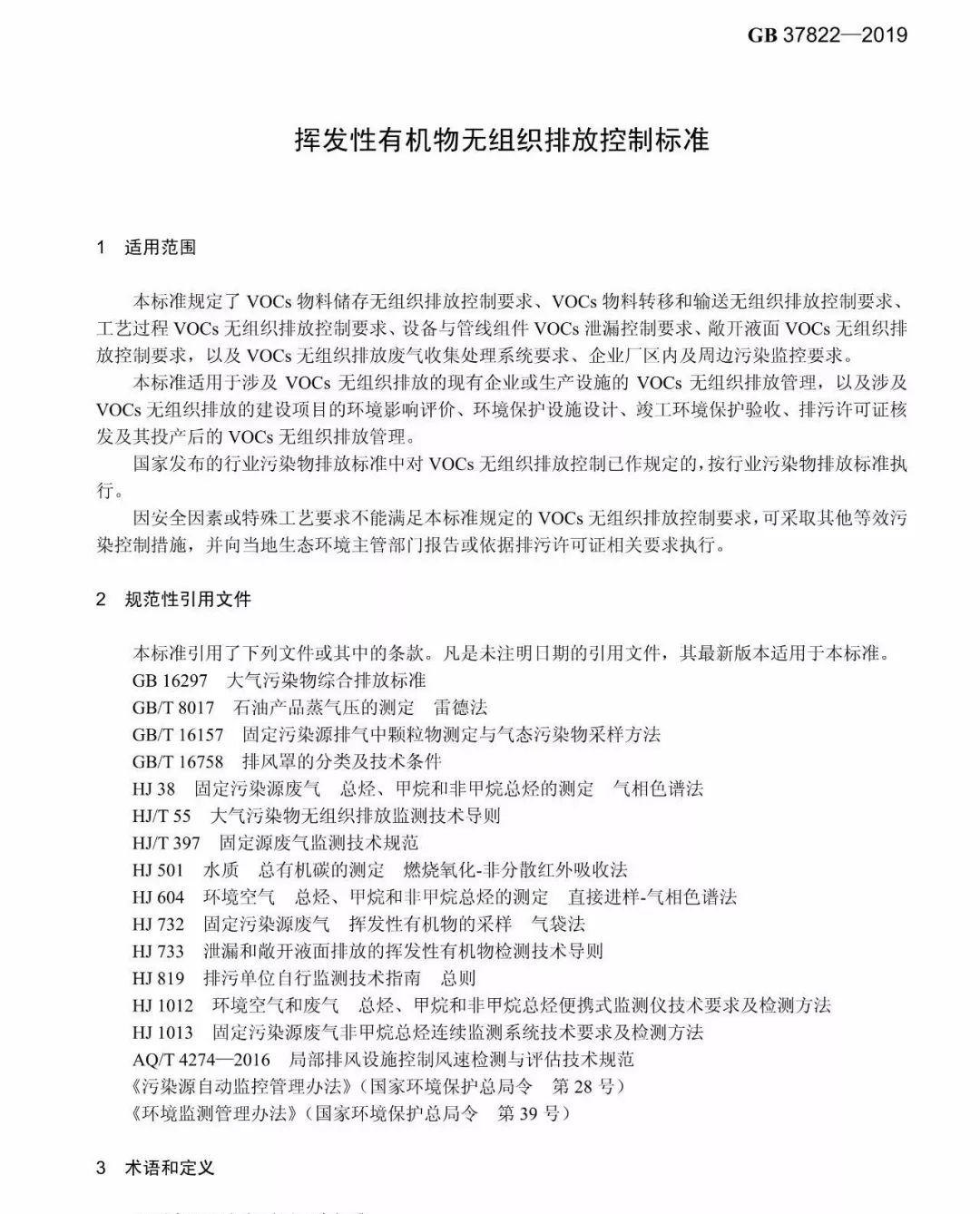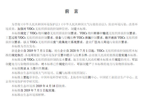 日前,環(huán)境部發(fā)布了《揮發(fā)性有機物無組織排放控制標準》(GB 37822—2019)。