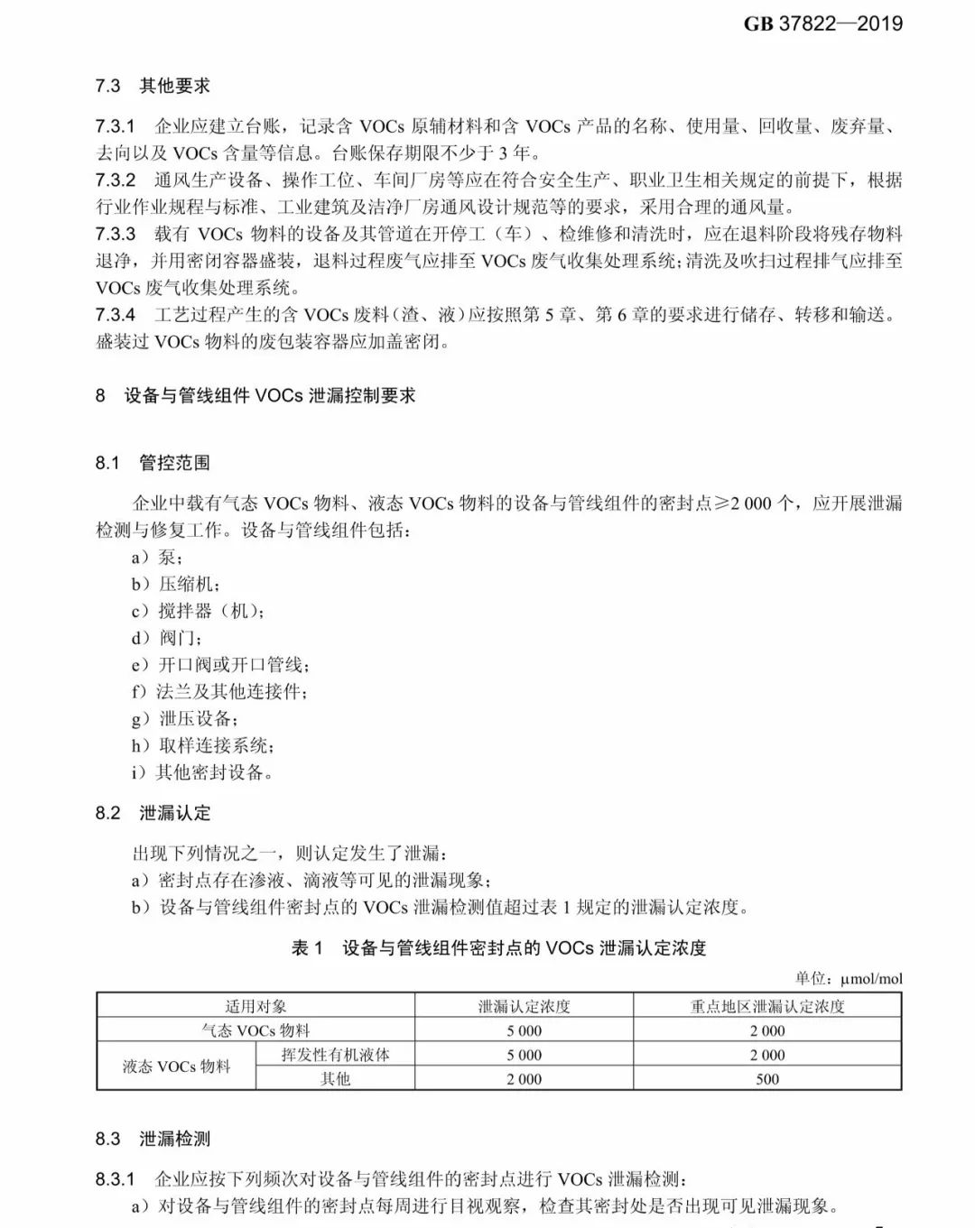 標準規(guī)定了 VOCs物料儲存無組織排放控制要求、VOCs物料轉(zhuǎn)移和輸送無組織排放控制要求、工藝過程 VOCs無組織排放控制要求、設(shè)備與管線組件 VOCs泄漏控制要求、敞開液面 VOCs無組織排放控制要求,以及 VOCs無組織排放廢氣收集處理系統(tǒng)要求、企業(yè)廠區(qū)內(nèi)及周邊污染監(jiān)控要求。