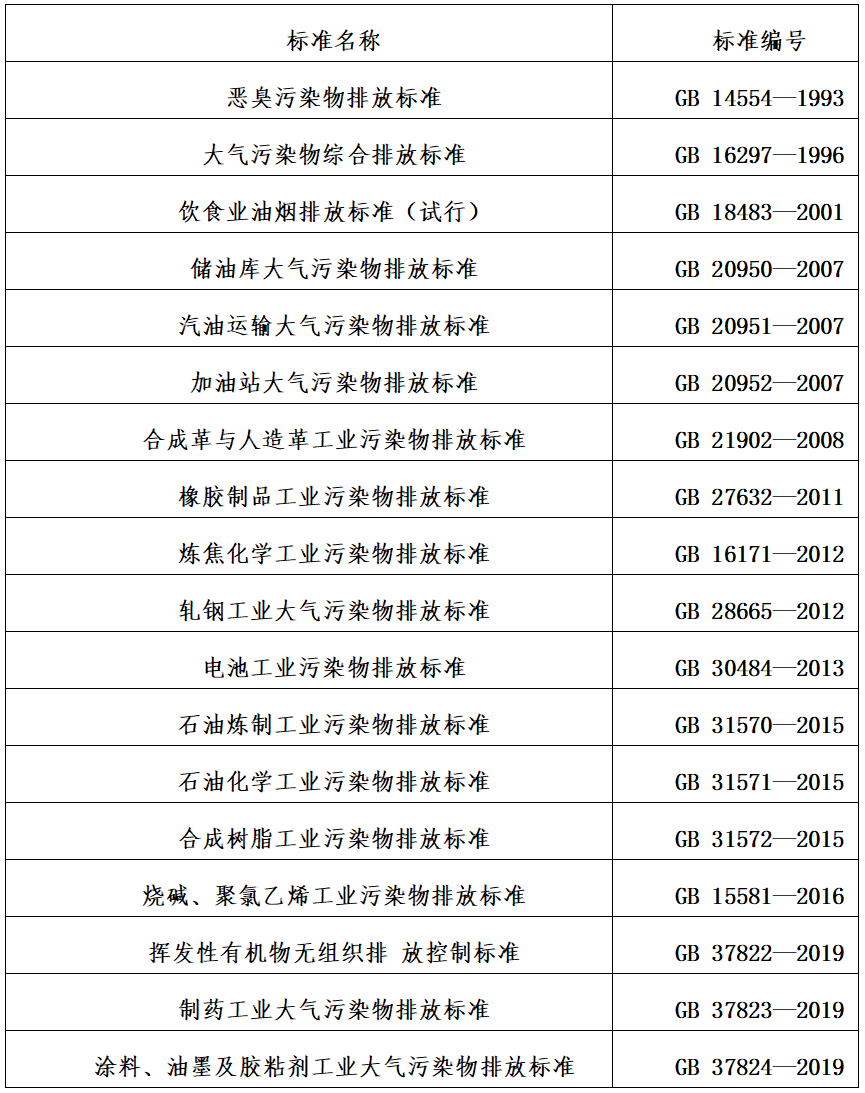 18項(xiàng)VOCs相關(guān)國家排放標(biāo)準(zhǔn)