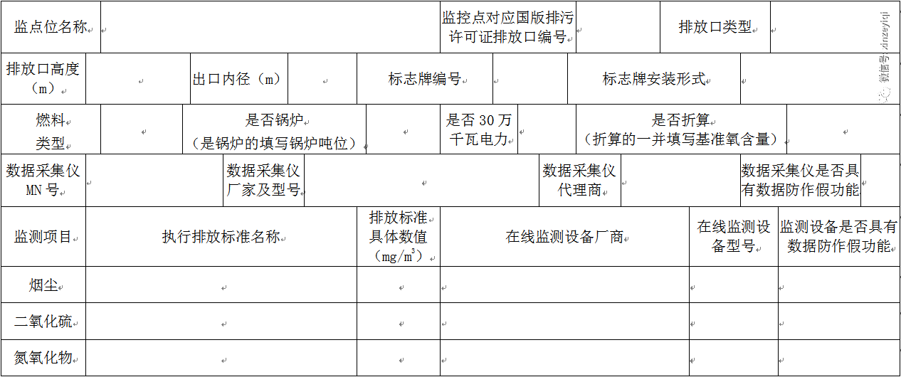 1、每個監(jiān)控點(diǎn)位填寫一張表,表中未涉及監(jiān)測因子企業(yè)可自行添加行。