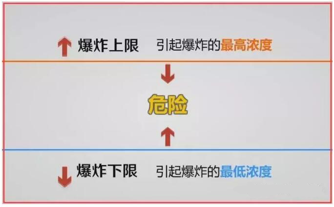 如常見的VOCs類汽油、苯、酒精等閃點(diǎn)在28℃以下,容易引發(fā)火災(zāi)事故。②爆炸極限也稱爆炸濃度極限,是指可燃物質(zhì)(可燃?xì)怏w、蒸氣和粉塵)與空氣(或氧氣)必須在一定的濃度范圍內(nèi)均勻混合,形成預(yù)混氣,遇著火源才會(huì)發(fā)生爆炸,這個(gè)濃度范圍。