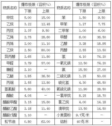 這是由于前者的可燃物濃度不夠,過量空氣的冷卻作用,阻止了火焰的蔓延;而后者則是空氣不足,導(dǎo)致火焰不能蔓延的緣故。常見物質(zhì)的爆炸極限如下,僅供參考: