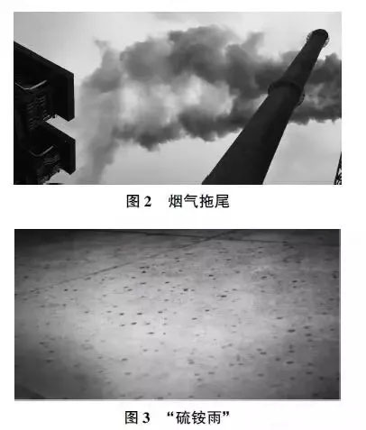 隨著環(huán)保排放要求提高后,對(duì)氨法脫硫系統(tǒng)進(jìn)行提高標(biāo)準(zhǔn)操作控制,二氧化硫排放質(zhì)量濃度可以達(dá)到35mg/m3超低排放水平,但煙氣拖尾和“硫銨雨”現(xiàn)象越來越嚴(yán)重,煙氣拖尾有時(shí)長達(dá)數(shù)百米,造成的二次視覺污染成為環(huán)保的關(guān)注焦點(diǎn),散落的“硫銨雨”對(duì)周邊設(shè)備造成嚴(yán)重腐蝕(見圖2 和圖3)。