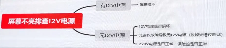 紅線完全消失的這種諧圖一般是光譜沒(méi)有接收到光信號(hào)。原因可能光譜儀12V電源松動(dòng)、光源發(fā)射端插頭松動(dòng)、折射鏡片脫落等。